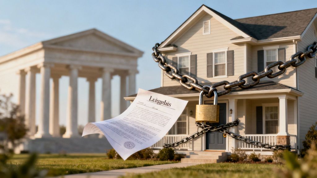 A lien is a legal "hold" placed on a property because of an unpaid debt. It acts as a red flag on the property's title, signaling that a creditor has a right to the property's value. The foreclosure is the legal process that follows—it’s how the creditor forces the sale of the property to satisfy the debt.